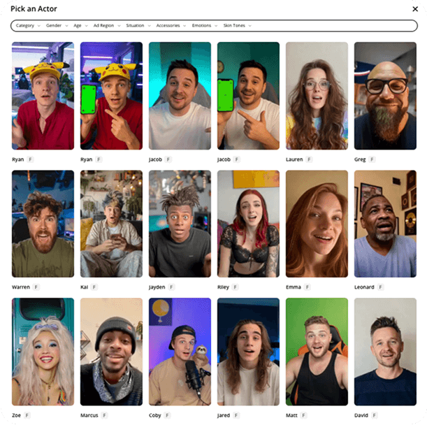 Choose from 500+ diverse AI avatars in your desired scenes and accessories